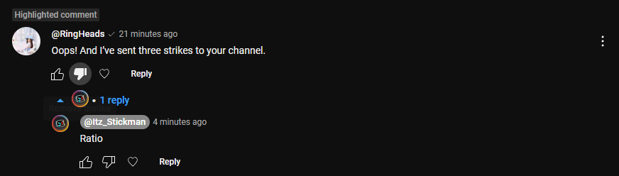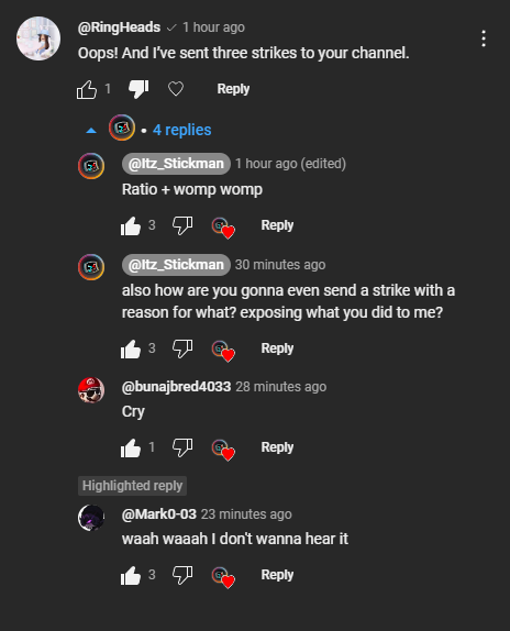 Ring has responded to Stickman saying she sent 3 copyright strikes to Stickman...